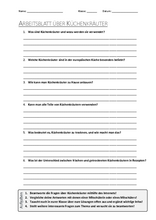 Arbeitsblatt mit Fragen zum Thema "Küchenkräuter"