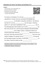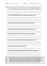 Arbeitsblatt mit Fragen zum Thema "Tom Sawyer und Huckleberry Finn"