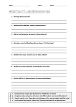 Arbeitsblatt mit Fragen zum Thema "Bremerhaven"