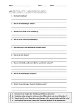 Arbeitsblatt mit Fragen zum Thema "Heidelberg"