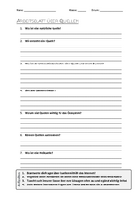 Arbeitsblatt mit Fragen zum Thema "Quelle"