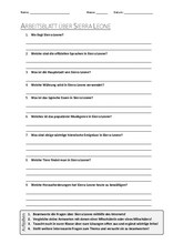 Arbeitsblatt mit Fragen zum Thema "Sierra Leone"