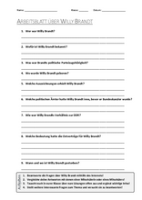 Arbeitsblatt mit Fragen zum Thema "Willy Brandt"
