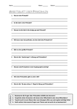 Arbeitsblatt mit Fragen zum Thema "Primzahl"