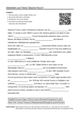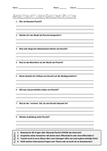 Arbeitsblatt mit Fragen zum Thema "Giacomo Puccini"
