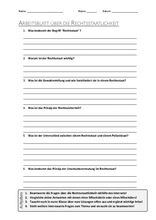 Arbeitsblatt mit Fragen zum Thema "Rechtsstaat"