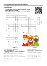 Arbeitsblatt mit QR-Code Kreuzwortraetsel zum Thema "Heilige Drei Könige"