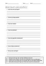 Arbeitsblatt mit Fragen zum Thema "Papst"