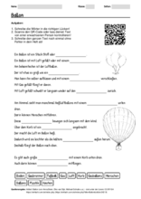 Arbeitsblatt mit QR-Code Grundschule zum Thema "Ballon (einfache Sprache)"