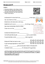 Arbeitsblatt mit QR-Code Grundschule zum Thema "Blindenschrift (einfache Sprache)"