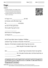 Arbeitsblatt mit QR-Code Grundschule zum Thema "Finger (einfache Sprache)"